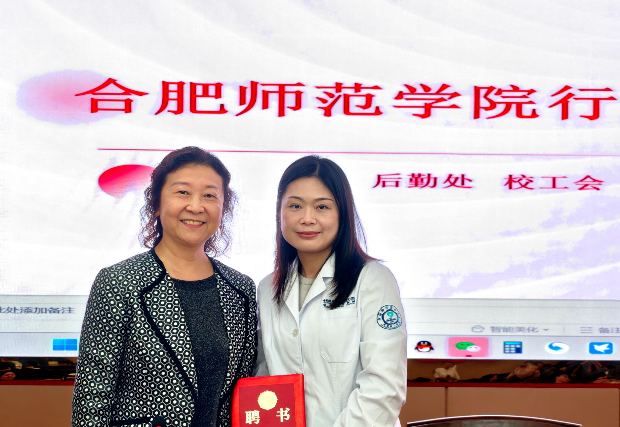 据了解,本次行知健康讲堂由后勤处、校工会、科研处联合主办。校工会李红主席向邢娟老师颁发了合肥师范学院教育工会健康顾问荣誉证书。